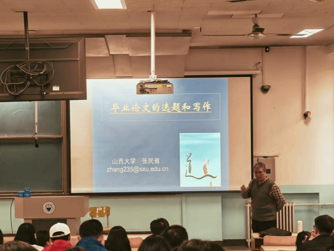 2024年11月9日下午,MPA教育中心聘请山西大学张民省教授,为全体23级、24级MPA硕士研究生进行题为《毕业论文的选题与写作》的讲座。张民省教授结合自身多年的论文指导经验与MPA研究生自身的特点,从论文的选题、论文的写作格式和论文结构的逻辑等三个方面入手谈了对MPA毕业论文写作的理解,立足于写作实践的角度对论MPA毕业论文进行了全方位的解读。讲座结束后张民省教授与在场的师生分享了论文指导的经验并进行了讨论。