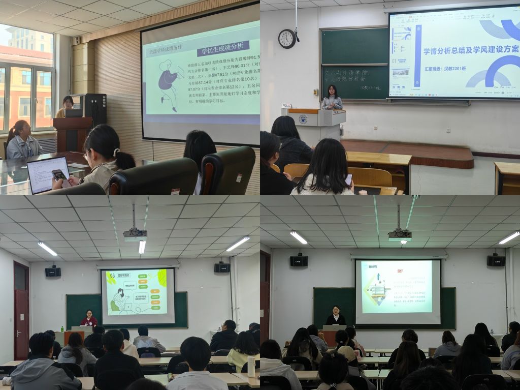 精心准备,全面分析。辅导员赵晓靖带领班委统计数据、分析学情、制定策略,做好充足的准备工作。会上,各班学习委员以班级总体成绩、各科及格率、英语体测通过情况等方面为切入点,针对上一学年成绩做出了多维度网格化分析总结,深入剖析了班级学风建设过程中面对的具体问题,并提出了切实可行的优化措施,如建立学优带学困“一帮一”小组、英语四、六级提升模拟演练等。