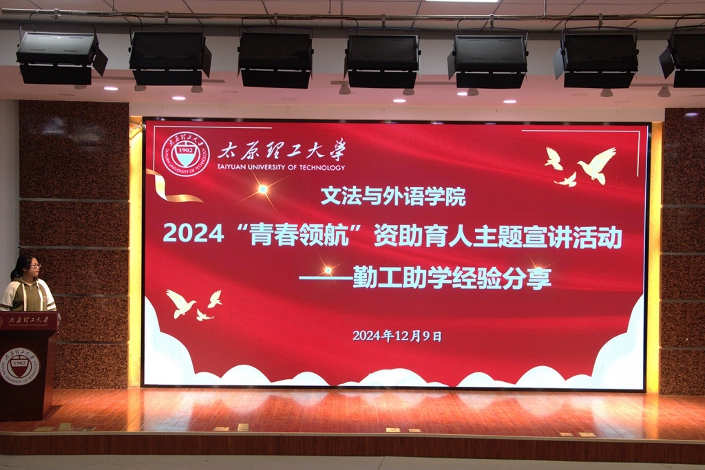 为进一步彰显资助育人的激励作用,落实立德树人根本任务,切实推动学院学风建设,引导学生树立营造积极学习、奋发向上的良好学风,12月9日中午,文法与外语“榜样领航”第三期分享会于学院北楼一层报告厅举行。本次分享会邀请2023-2024年度三好学生、优秀学生干部、优秀学生奖学金获得者以及勤工助学优秀学生代表共四名优秀学子主讲。