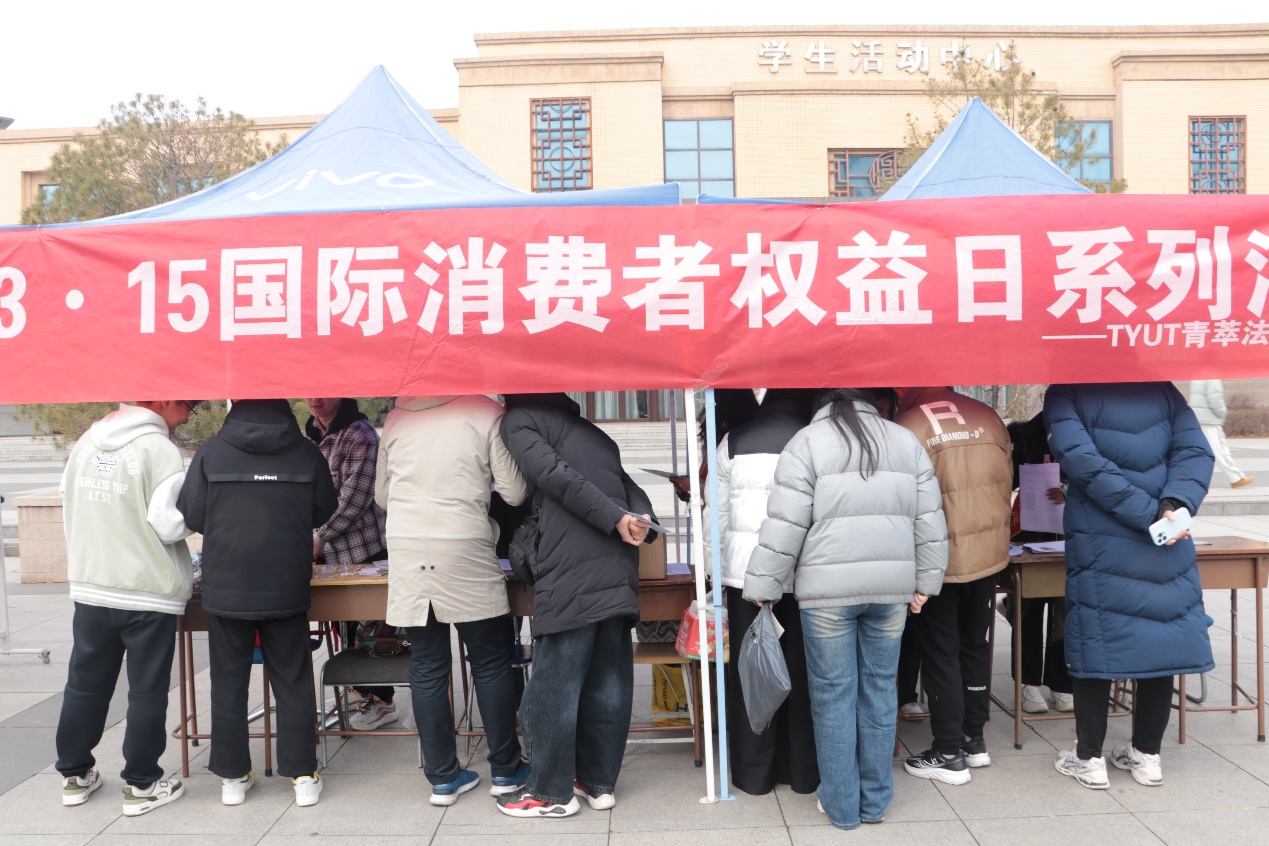 “消法铭于心,维权我在行”。为全面落实习近平总书记关于促进消费和消费者权益保护工作的重要指示,提高大学生的消费维权的意识,引导学生树立正确的消费观念。3月15日,beat365平台官方网站青萃法律服务中心在明向校区西区小广场开展“3·15国际消费者权益保护日”普法宣传活动,旨在强化消费者维权意识,为构建公平、公正、诚信的消费市场添砖加瓦。