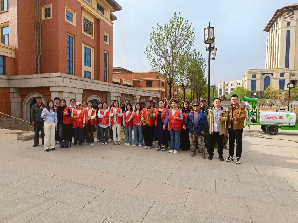 培训结束后,劳动实践正式拉开帷幕。同学们迅速投入到紧张而有序的工作中,劳动现场呈现出一派热火朝天的繁忙景象。修剪绿篱的同学们手持专业工具,眼神专注,动作娴熟,他们沿着绿篱的轮廓,一丝不苟地修剪着每一处枝叶,不一会儿,原本参差不齐的绿篱便变得整齐划一、棱角分明;负责翻土的同学们紧握铁锹,用力插入土壤,再奋力将土块翻起,大家干劲十足,让沉睡的土地焕发出新的生机;浇水的同学们则提着水桶,穿梭在树木与绿篱之间,细心地为每一株植物补充水分,确保它们能够茁壮成长。大家分工明确、密切配合,充分展现了我院党员队伍团结协作、吃苦耐劳的优良作风。
