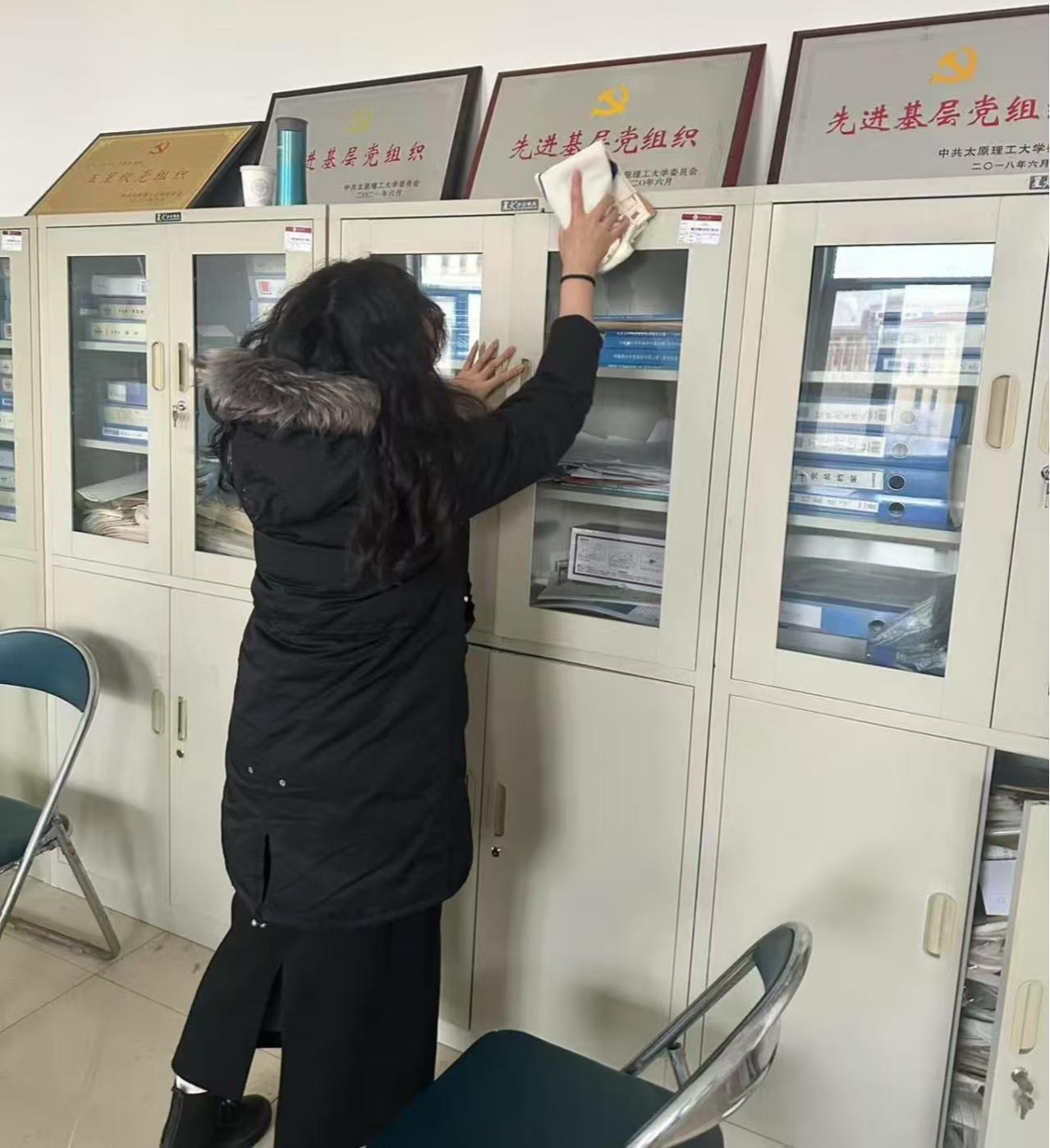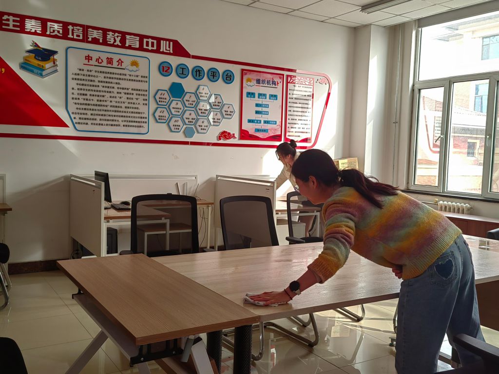 活动期间,同学们分组对学院办公室、自习室、公共教室等区域展开深度清洁。从整理桌椅、分类书籍资料,到擦拭门窗、清扫地面,每一处角落都留下了同学们忙碌的身影。大家分工明确、配合默契,有的负责清理积尘已久的书架,有的专注整理散落的学术资料,还有的细心擦拭黑板和讲台。尽管任务繁重,但现场始终洋溢着团结协作的温暖氛围。经过一周的努力,学院办公及教学环境焕然一新,窗明几净的教室和井然有序的办公室成为劳动成果的最佳见证。