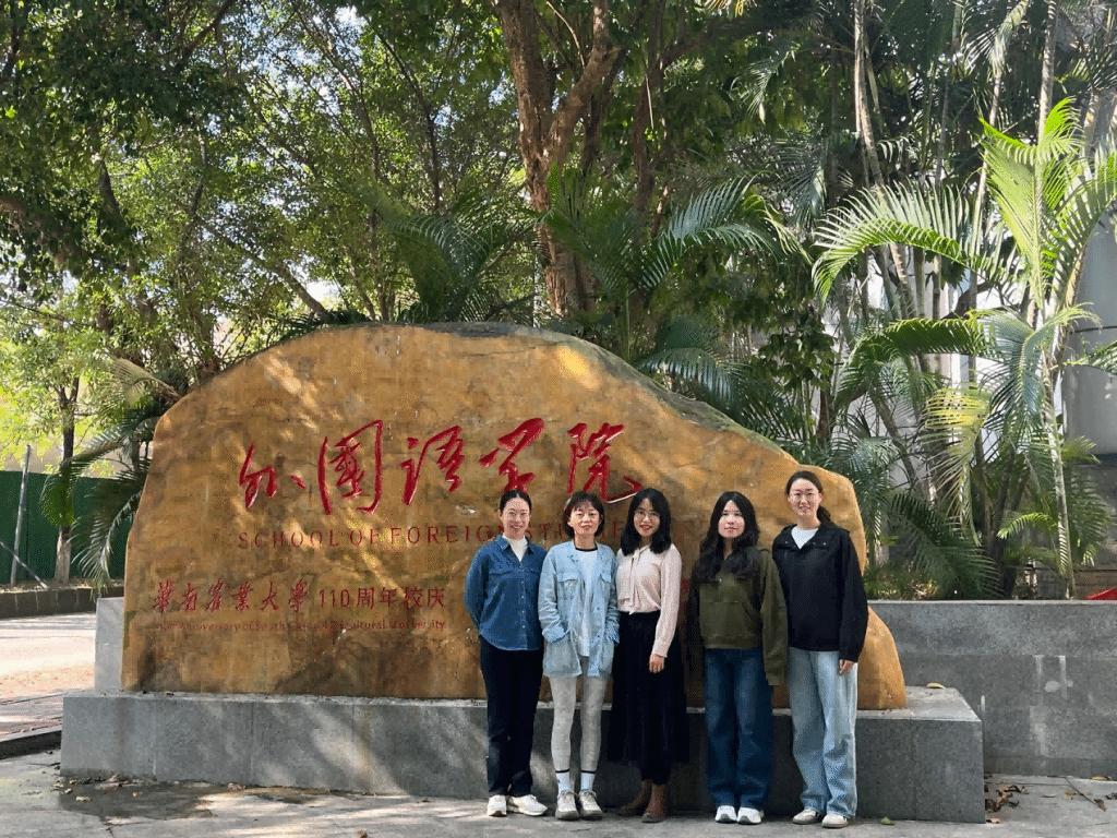 祁瑶、李慧艳、阎聆萱、胡佳、史晓媛五位教师远赴广州,参加“面向生成式人工智能的外语教师智慧教研能力提升”系列研修班Ⅲ:新形态外语教材与教法研究班。线下研修于2024年11月22-25日在位于广州市的华南农业大学举办,研修地点为华南农业大学外国语学院402学术报告厅。外语界知名专家学者就语言数字化转型、多媒体素材与资源开发、教师的媒体与智能素语料库技术与课堂教学、混合式学习与任务设计以及数字化赋能与智慧教研等话题展开讨论,五位教师以讲座、案例分析等方式参与,进一步学习了优化生成式人工智能在今后虚拟教研室(AI赋能教育云工作坊)建设中的推动作用。