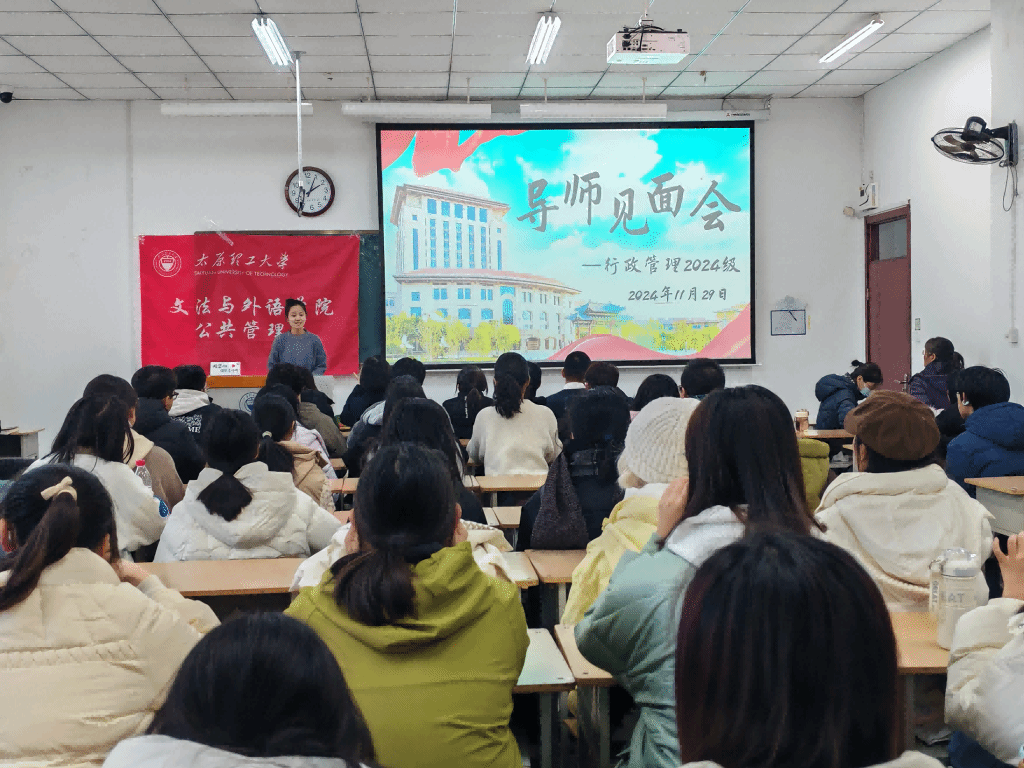 公共管理系全体教师与行政管理2024级全体同学参加了此次见面会。会议由刘钰莹同学主持。各位导师分别介绍了自己的研究方向和教学经验,为同学们提供了宝贵的学习建议和职业规划指导。他们语言幽默、态度可亲,获得了同学们的阵阵掌声,现场氛围轻松愉快。